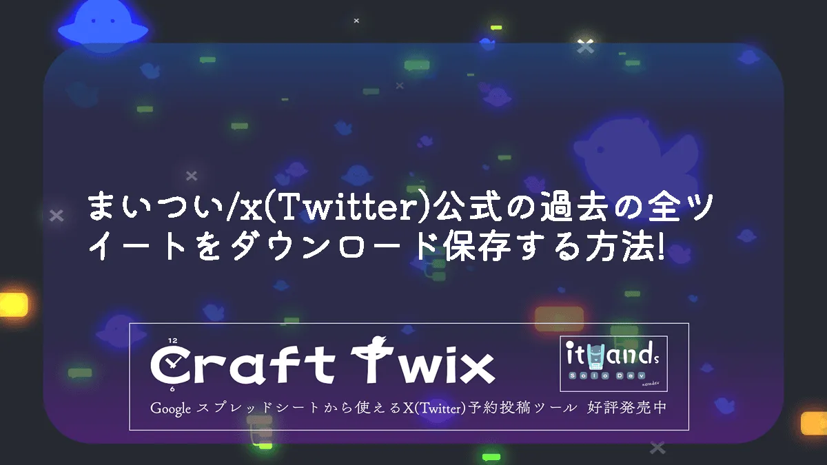 (追記)2023/5/1現在、まだ動きます。(Twitter API停止のスケジュールが遅れているようです) → 2023/8/10 ツイートの取得ができなくなっています…API有料化によって起こった悲劇(´・ω・`)